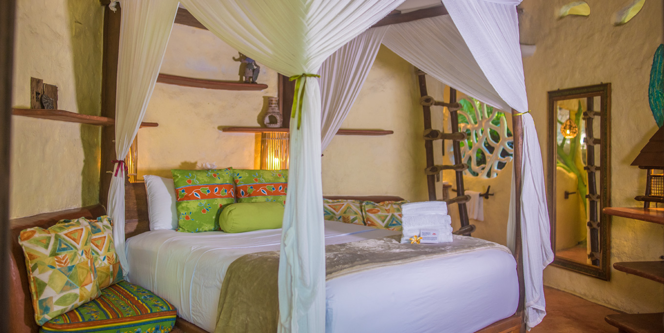 bajo la sombra de los árboles después de un día largo de olas cálidas, arena caliente y bebidas exquisitas… desciende a la comodidad de tu cama queen, cierra tus ojos, sueña con el mañana… tan sólo como otro hoy…