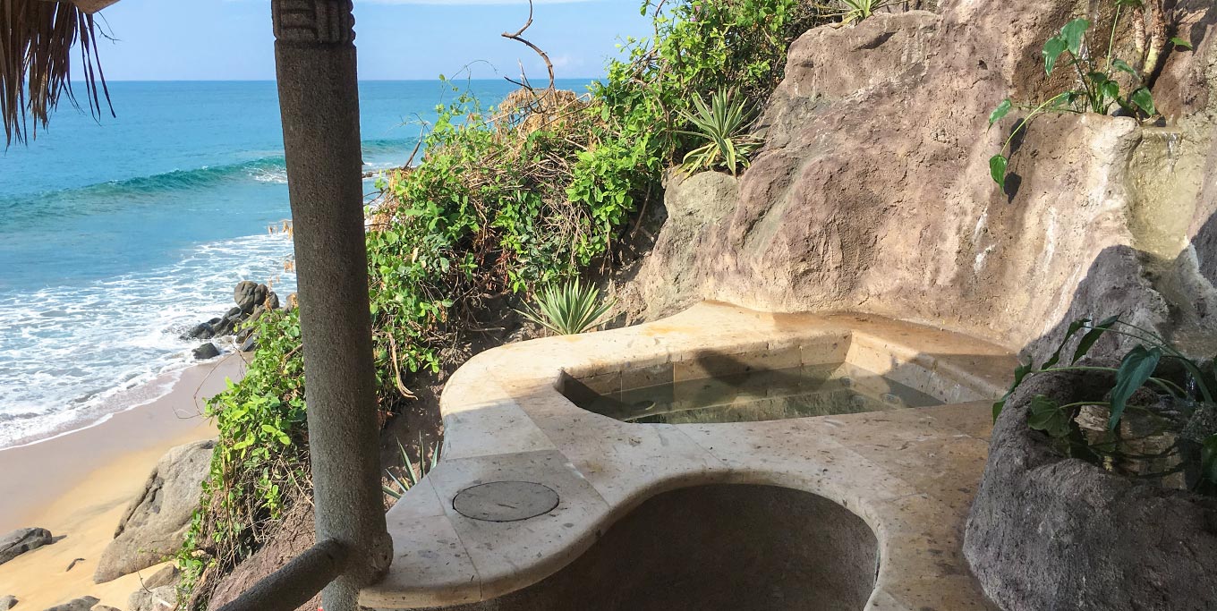 En los límites de la fantasía, arriba donde los pájaros vuelan, con una vista al inmenso océano pacífico de día, y un pabellón de millones de estrellas de noche... un lugar mágico para disfrutar de un Spa en el balcón de Ixchel Penthouse.