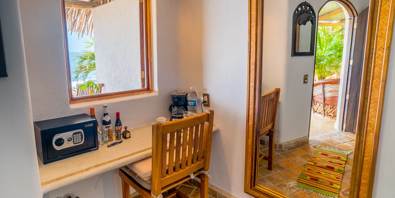 Percibe el toque de elegancia en los detalles de tu íntima y romántica habitación con piso rústico de mármol y tocador de concha y mármol. Recuéstate en tu cama o ve a las regaderas y descubre como el océano no se aparta de tu vista.