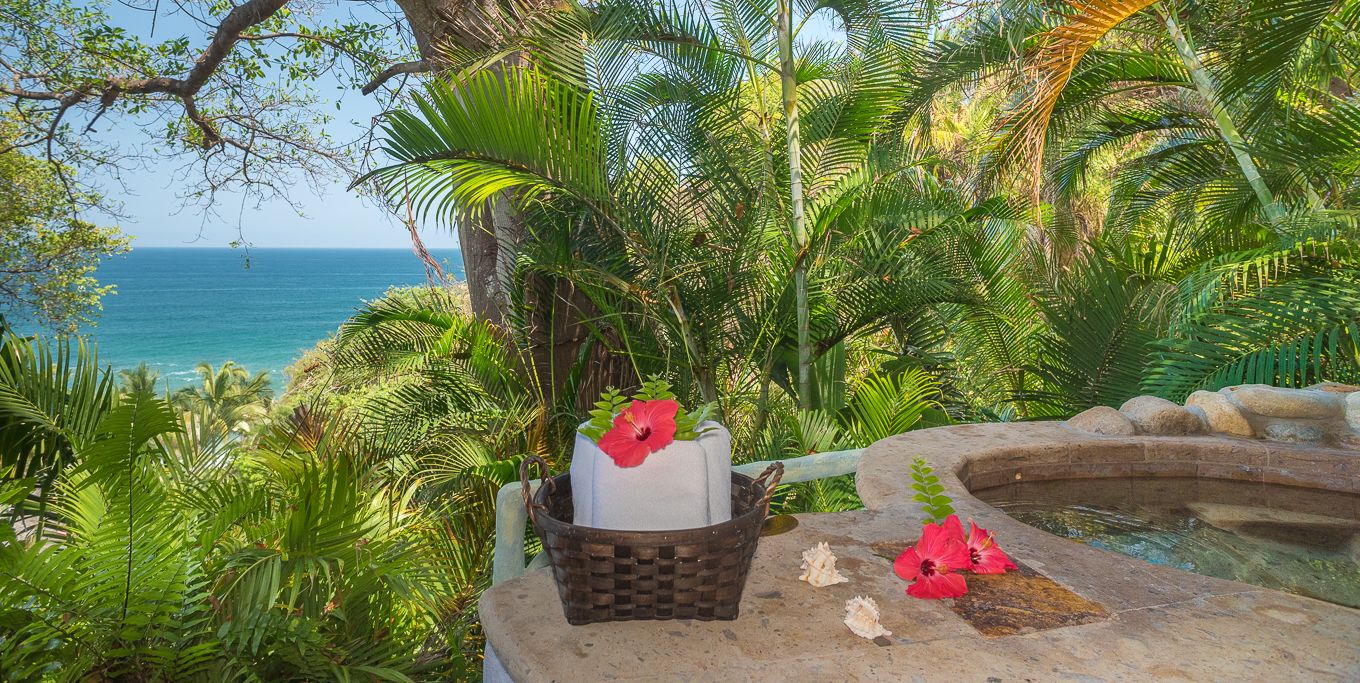 Baja la mirada hacia la jungla sobre la ladera y sigue hacia el mar de bajo de tu jacuzzi, situado sobre piedra natural y hermosamente integrado a la magnífica arquitectura. Relaja tu mente y cuerpo.