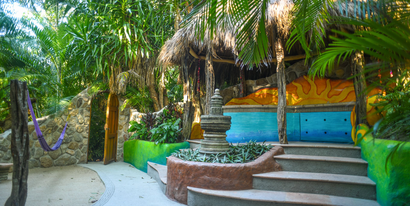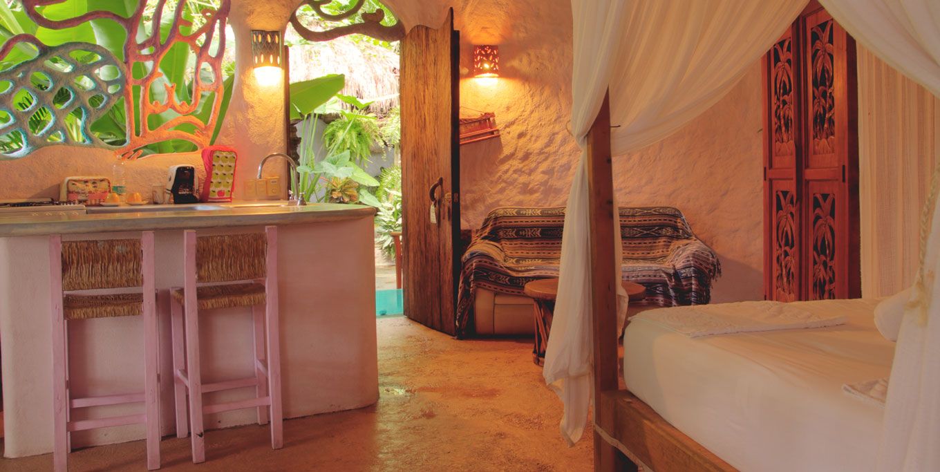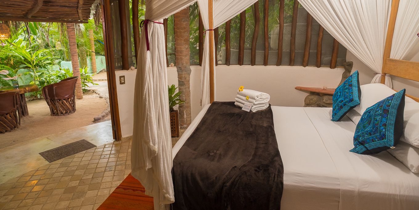 Lee un libro bajo la sombra de una higuera mientras las aves aletean a través de las hojas de los árboles. Después de un día en la playa, de caminatas por la playa y a través de la jungla hacia el pueblo, toma un refrescante baño entre la copa de los árboles contemplando la vista de la jungla y el mar fusionándose a tus pies.